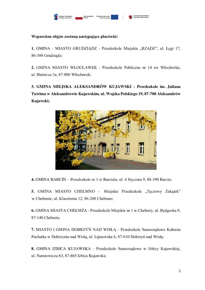 UCHWAŁĄ NR 11/633/24 ZARZĄDU WOJEWÓDZTWA KUJAWSKO-POMORSKIEGO z dnia 24 lipca 2024 r., przyznano dofinansowanie na realizację projektu własnego nr FEKP.08.11-IZ.00-0001/24 realizowanego w ramach programu Fundusze Europejskie dla Kujaw i Pomorza 2021-2027.