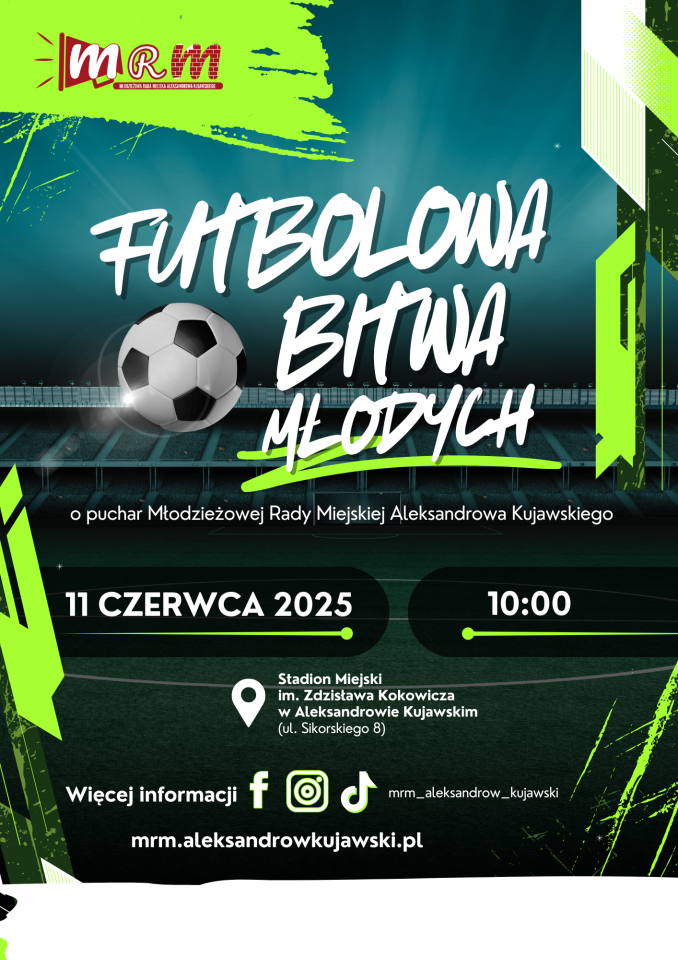 Masz w sobie sportowego ducha rywalizacji? Kochasz piłkę nożną i chcesz sprawdzić się na boisku z rówieśnikami? Nie przegap wyjątkowego wydarzenia organizowanego przez Młodzieżową Radę Miasta – Futbolowej Bitwy Młodych 2025!